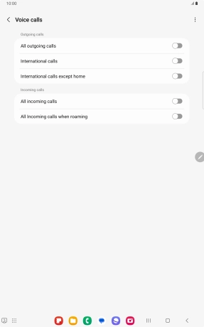 Press the indicator next to the required barring type to turn the function on or off.