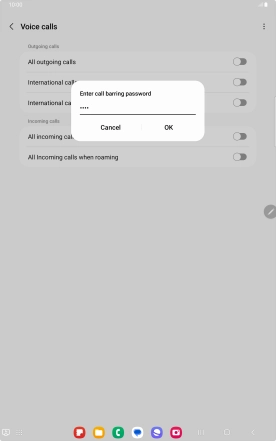 Key in your barring password and press OK. The default barring password is 1919.