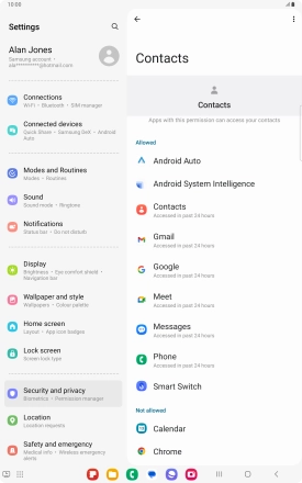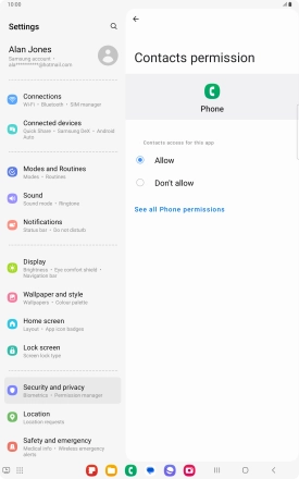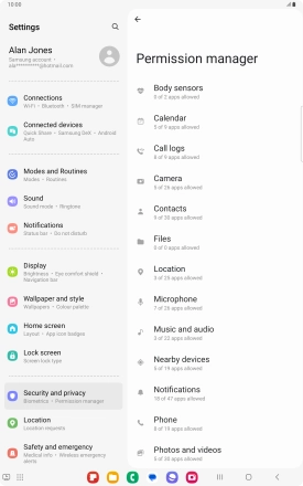 Turn app permissions on your Samsung Galaxy Tab S9 FE 5G Android 13 on or off