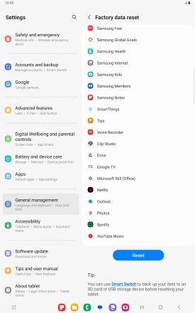 Press Delete all. Wait a moment while the factory default settings are restored. Follow the instructions on the screen to set up your tablet and prepare it for use.