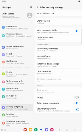Turn use of PIN on your Samsung Galaxy Tab S9 FE 5G Android 13 on or off