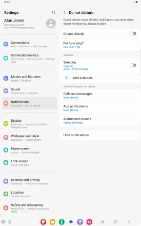Press Add schedule and follow the instructions on the screen to select settings for automatic activation of Do Not Disturb.