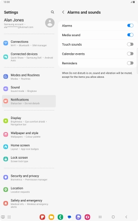 Press Alarms and sounds.