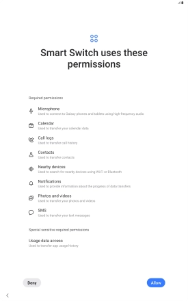 You can transfer the contents of another device to your tablet when it's activated for the first time and after a factory reset. When this screen is displayed, your tablet is ready to transfer contents from another device.