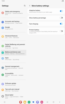 Press the indicator next to "Protect battery" to turn the function on or off.