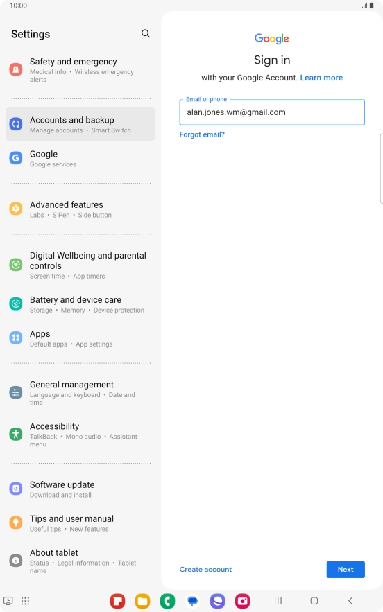 If you don't have a Google account, press Create account and follow the instructions on the screen to create an account.