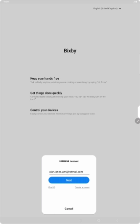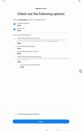 If you don't have a Samsung account, press Create account and follow the instructions on the screen to create an account.