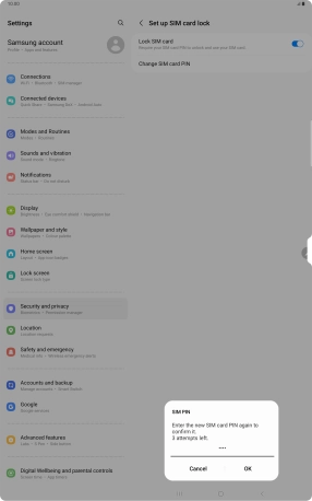 The PIN protects your SIM from unauthorised use if your tablet should get stolen. You can change your PIN to a PIN easier to remember of your choice. You need to turn on use of PIN before you can change your PIN.