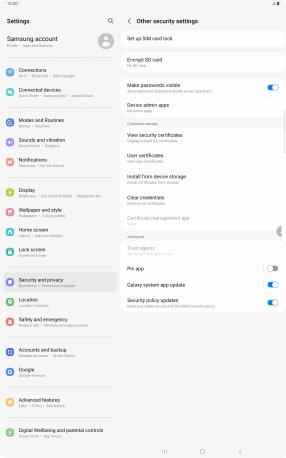 Press Security and privacy.