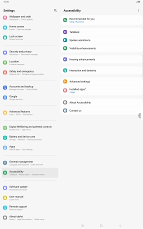 You can select various help function settings for screen, sound and interaction making it easier to use the tablet functions.