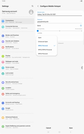 Press WPA3-Personal to password protect your Wi-Fi hotspot.