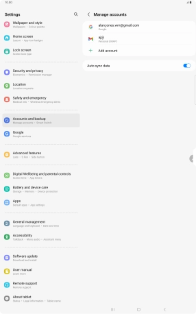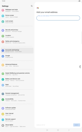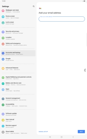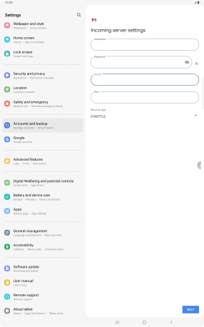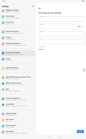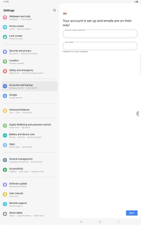 If this screen is displayed, you email account has been recognised and set up automatically. Follow the instructions on the screen to key in more information and finish setting up your tablet.