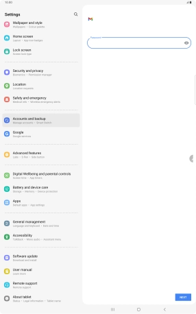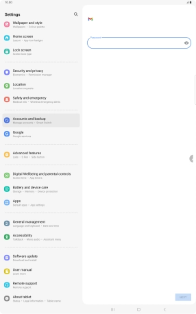 Press the field below "Password" and key in the password for your email account.