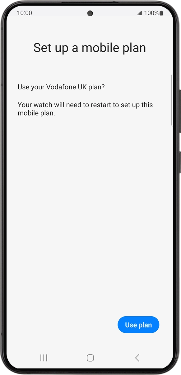 On your phone: If you've bought your smartwatch from Vodafone, you already have a OneNumber Connectivity price plan and this screen should be displayed.