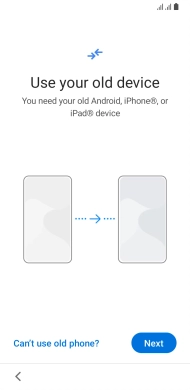 You can transfer the contents of another phone to your phone when it's activated for the first time and after a factory reset. When this screen is displayed, your phone is ready to transfer contents from another phone.