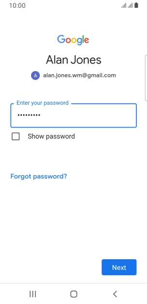 If you don't have a Google account, press Create account and follow the instructions on the screen to create an account.