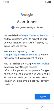 Press I agree and follow the instructions on the screen to select settings for your Google account.