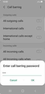 Key in your barring password and press OK. The default barring password is 1919.