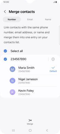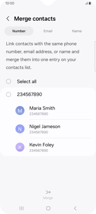 If the same contact appears more than once in your phone's address book, you can merge identical contacts so that they will appear only once.
