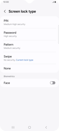 Press Screen lock type and key in the additional phone lock code you created earlier.