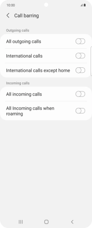2. Turn call barring on or off