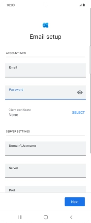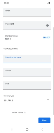 If this screen is displayed, your email account has been recognised and is being set up automatically. Follow the instructions on the screen to key in more information and finish setting up your phone.