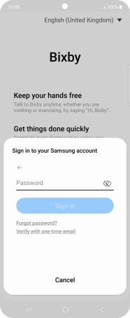 If you don't have a Samsung account, press Create account and follow the instructions on the screen to create an account.