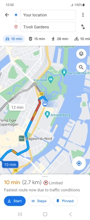 The travel information at the bottom of the screen shows your estimated time of arrival and distance to destination.
