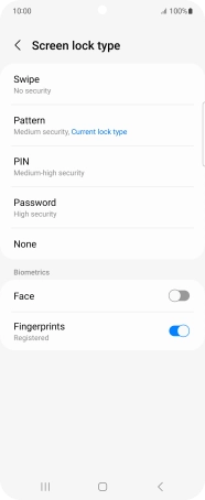 Press Screen lock type and key in the additional phone lock code you created earlier.