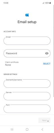 If this screen is displayed, your email account has been recognised and is being set up automatically. Follow the instructions on the screen to key in more information and finish setting up your phone.
