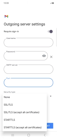 Press the field below "Username" and key in the username for your email the email provider's outgoing server.