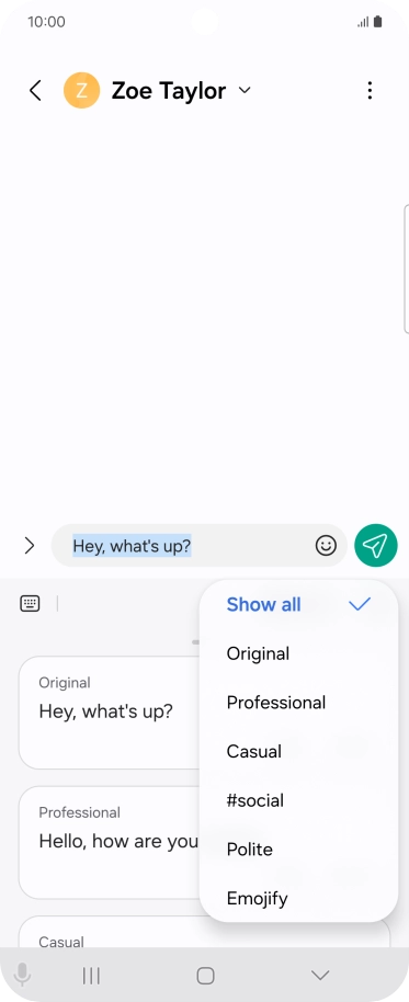 Using AI, you can change the style of writing in your messages. The function works with all of Samsung's own apps as well as message and social media apps.