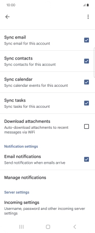 9. Turn on email message synchronisation