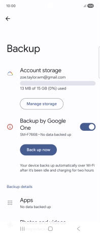 Press the indicator next to "Backup by Google One" to turn on the function.