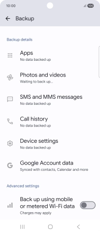 Press the indicator next to "Back up using mobile or metered Wi-Fi data" to turn the function on or off.