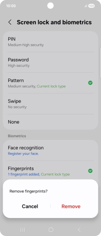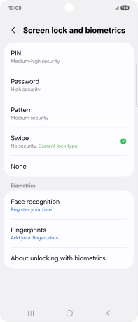 Press Screen lock and biometrics and key in the additional phone lock code you created earlier.