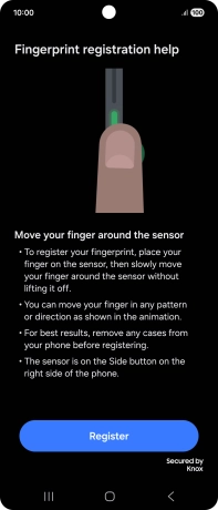 Place your finger on the Side key to test your fingerprint.
