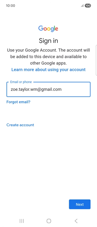 If you don't have a Google account, press Create account and follow the instructions on the screen to create an account.
