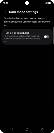 If you select Custom schedule, follow the instructions on the screen to select the required period of time for dark mode.