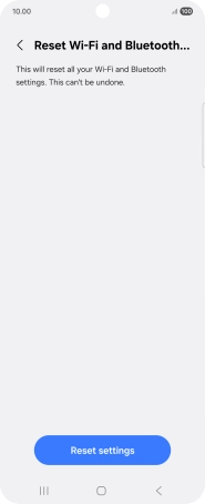 Please note that all saved Wi-Fi and Bluetooth connections and passwords, you've created, are deleted.