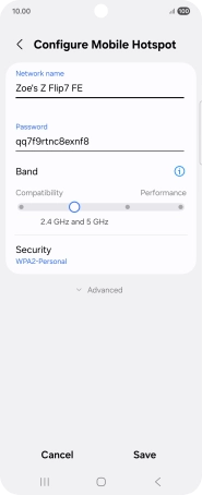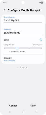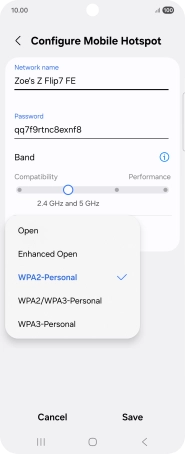 Press WPA3-Personal to password protect your Wi-Fi hotspot.