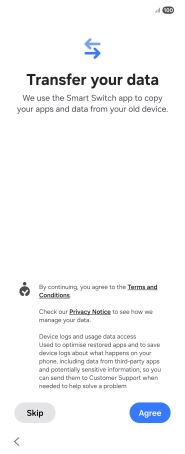 You can transfer the contents of another phone to your phone when it's activated for the first time and after a factory reset. When this screen is displayed, your phone is ready to transfer content from another phone.