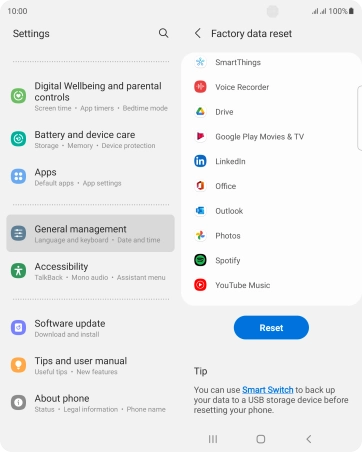 Press Factory data reset.