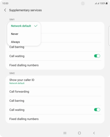 Press Show your caller ID below the required SIM.