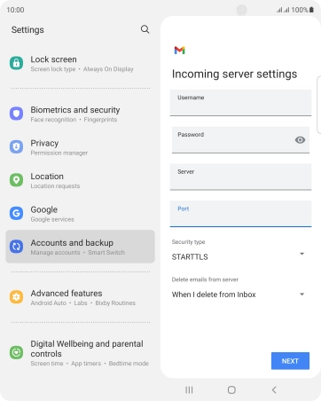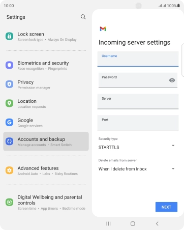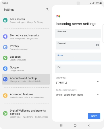 Press the field below "Server" and key in the name of your email provider's incoming server.