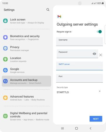Press the field below "Username" and key in the username for your email the email provider's outgoing server.