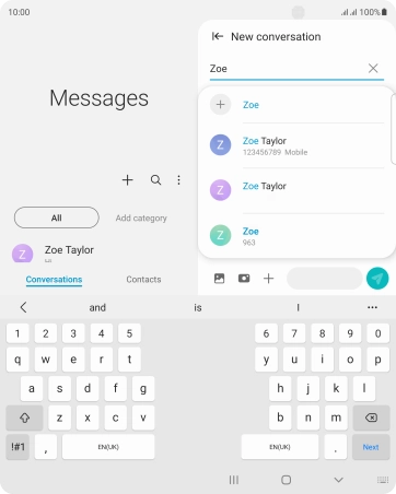 Press the search field and key in the first letters of the recipient's name.