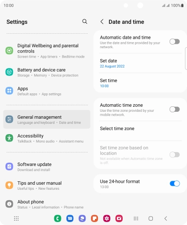 Press the indicator next to "Automatic date and time" to turn on the function.