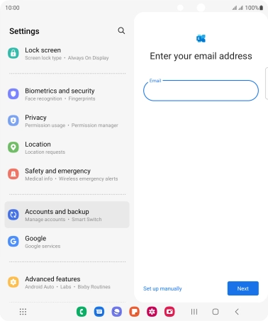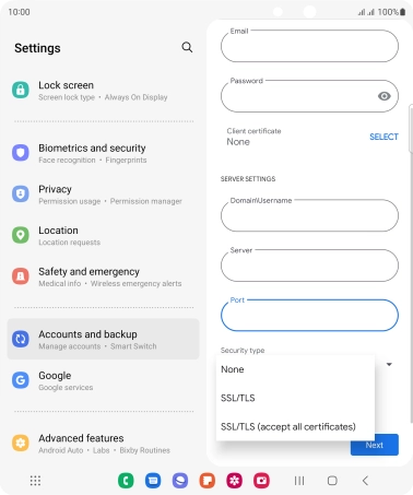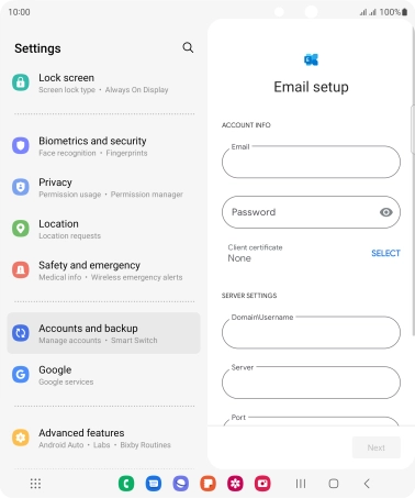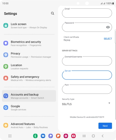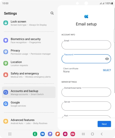 If this screen is displayed, your email account has been recognised and is being set up automatically. Follow the instructions on the screen to key in more information and finish setting up your phone.