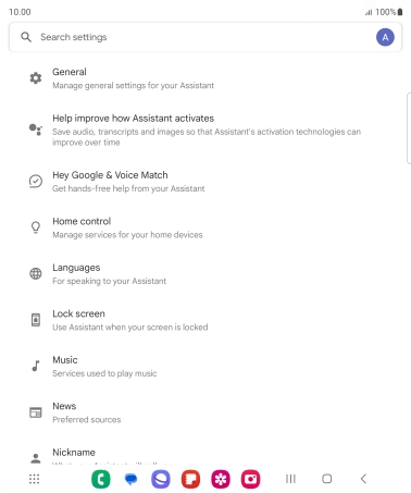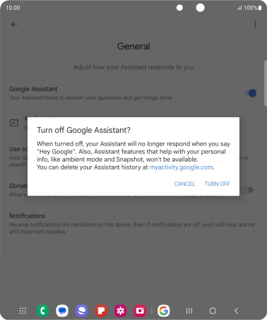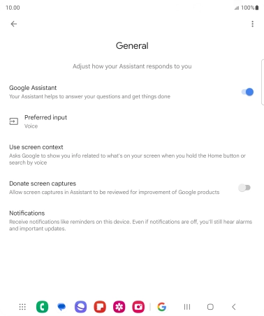 Press the indicator next to "Google Assistant" to turn the function on or off.